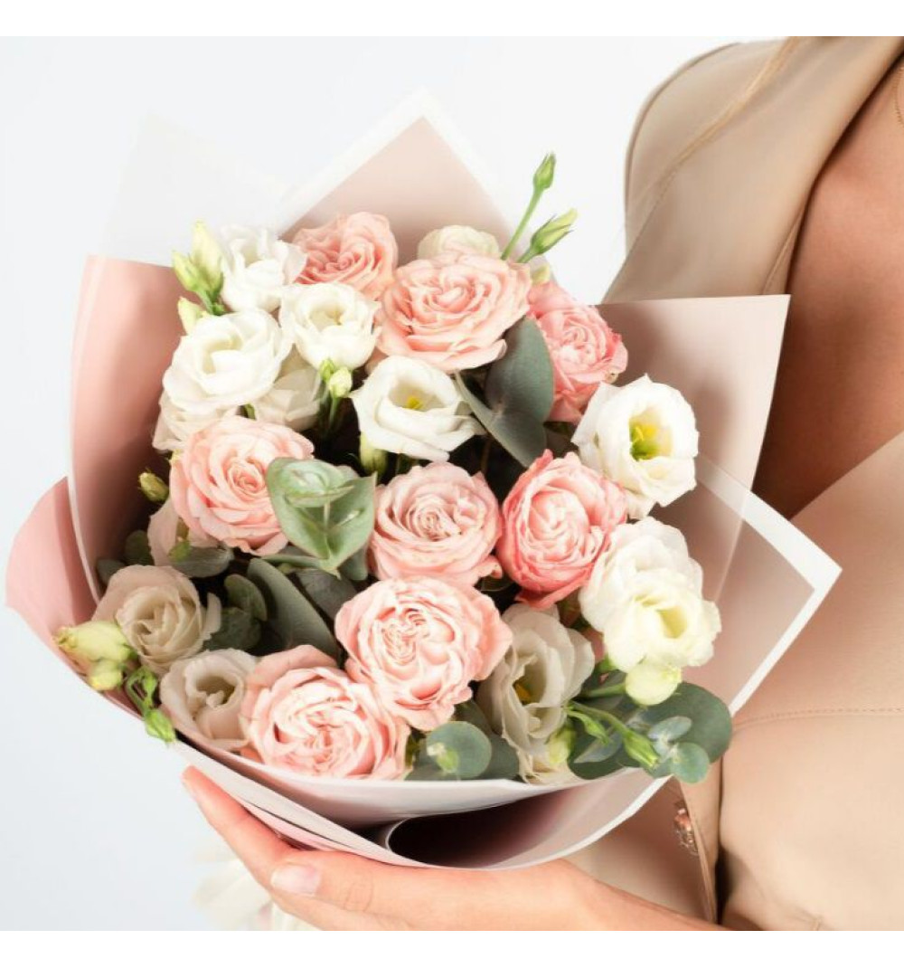 Купить Авторский букет с пионовидной розой и эустомой в Каскелене за 20 000 ₸ | интернет-магазин «Guls»
