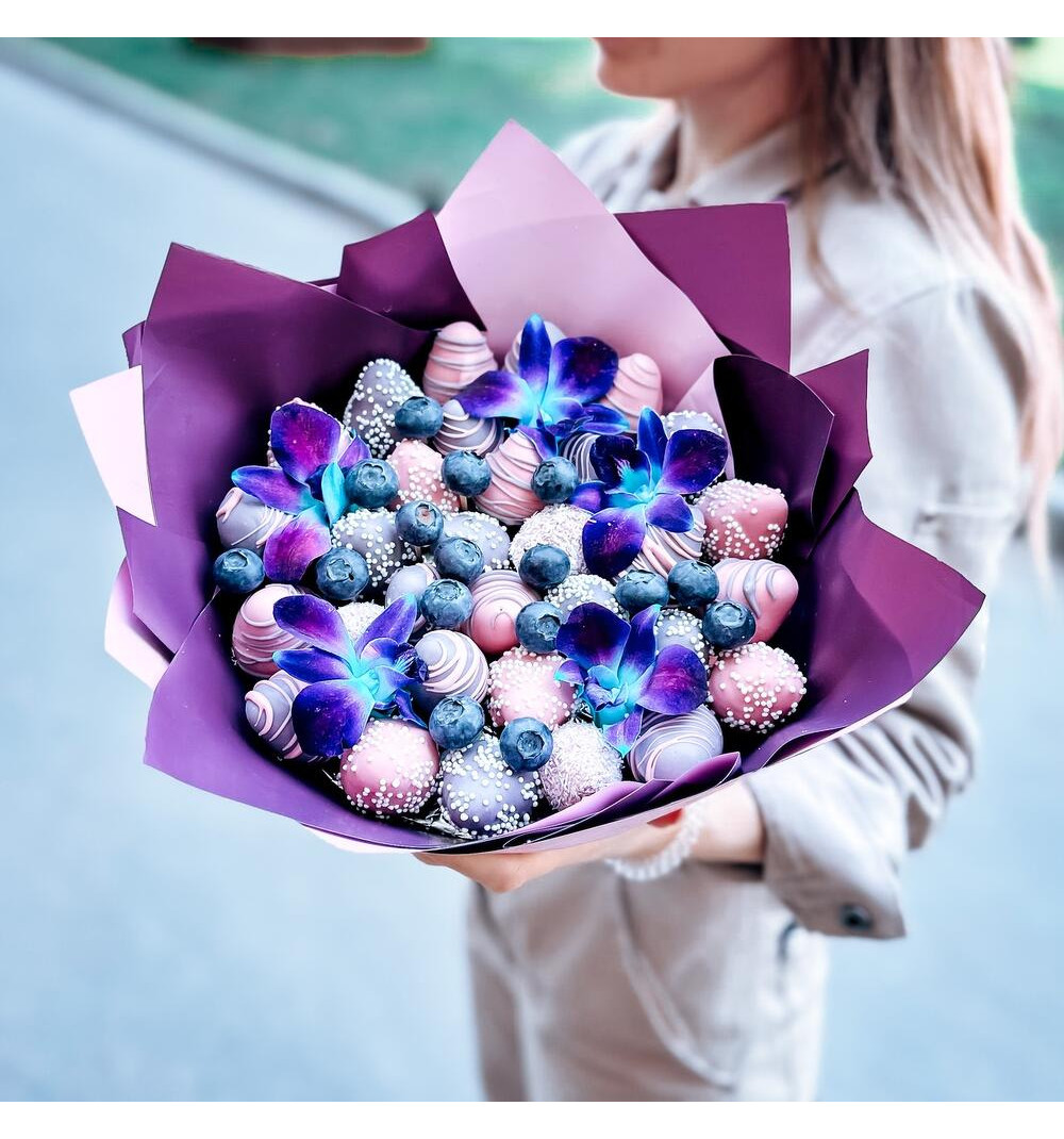 Купить Букет из клубники и орхидей космос в Каскелене за 20 000 ₸ | интернет-магазин «Guls»