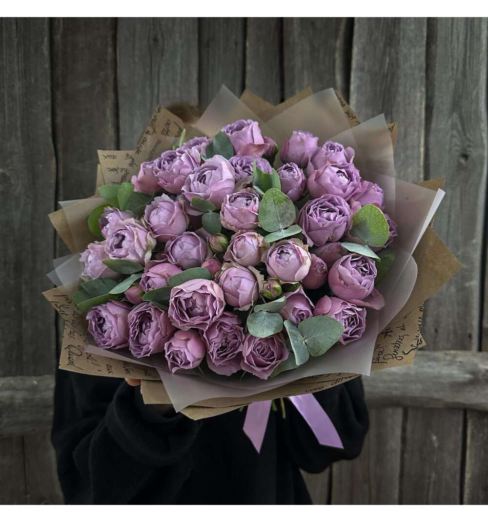 Купить Монобукет из пионовидных кустовых роз Лавендер Баблз в Каскелене за 18 600 ₸ | интернет-магазин «Guls»