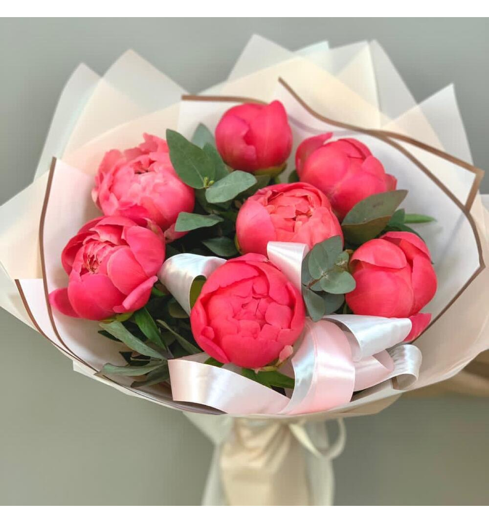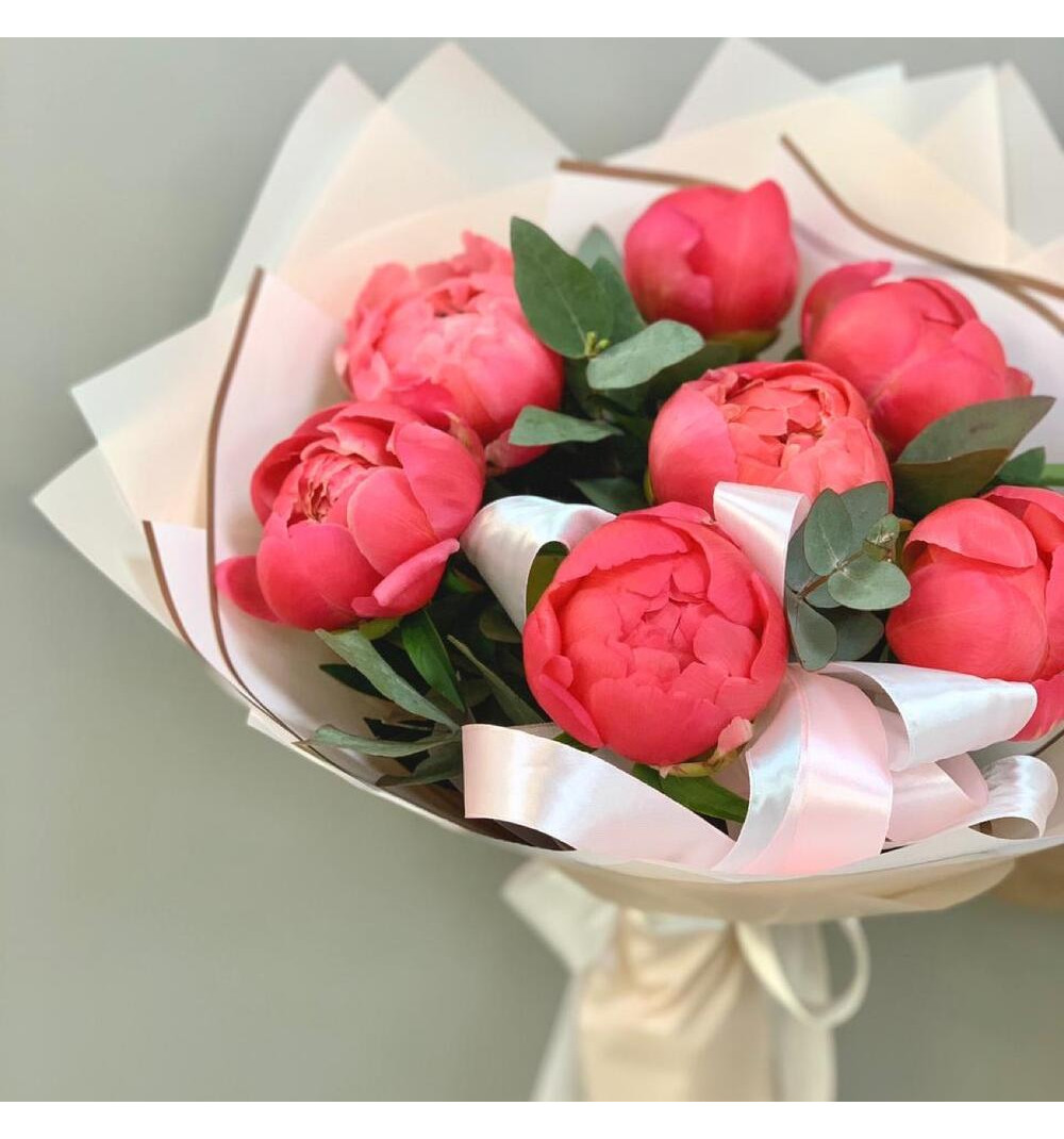 Этот очаровательный букет завораживает своими нежными коралловыми оттенками. Эти прекрасные цветы обладают яркой красотой и придают композиции особый шарм. Изящные пионы символизируют богатство и процветание, а их утонченный аромат приносит радость и вдохновение. Букет "Пионы коралловый шарм" станет прекрасным подарком для особенных моментов жизни, олицетворяя нежные чувства и надежду на счастье. Украсьте этим букетом свой дом или сделайте приятное сюрприз близкому человеку, и он навсегда останется в его сердце.