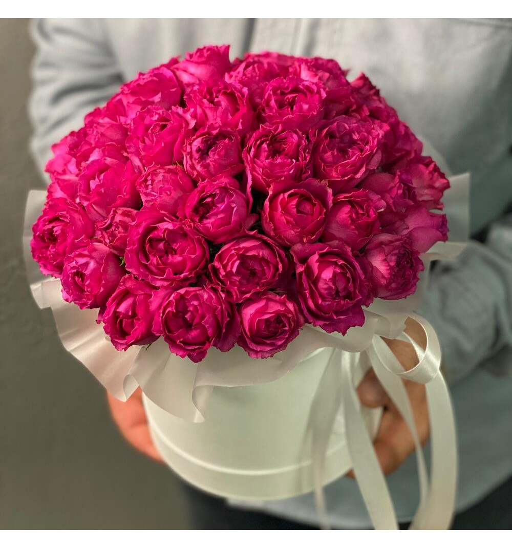 "Пионовидная кустовая роза в коробке" - это великолепный букет, в котором пышные и крупные цветы пионовидной розы гармонично сочетаются с элегантной и стильной коробкой. Этот букет обладает изысканным и роскошным видом, который придаст особенный шарм любому интерьеру. Пионовидные розы известны своей нежностью и красотой, а также приятным ароматом, который создаст атмосферу уюта и романтики. Коробка, в которой представлены эти прекрасные цветы, добавляет шика и элегантности букету, что делает его идеальным подарком для особого человека или особого случая.